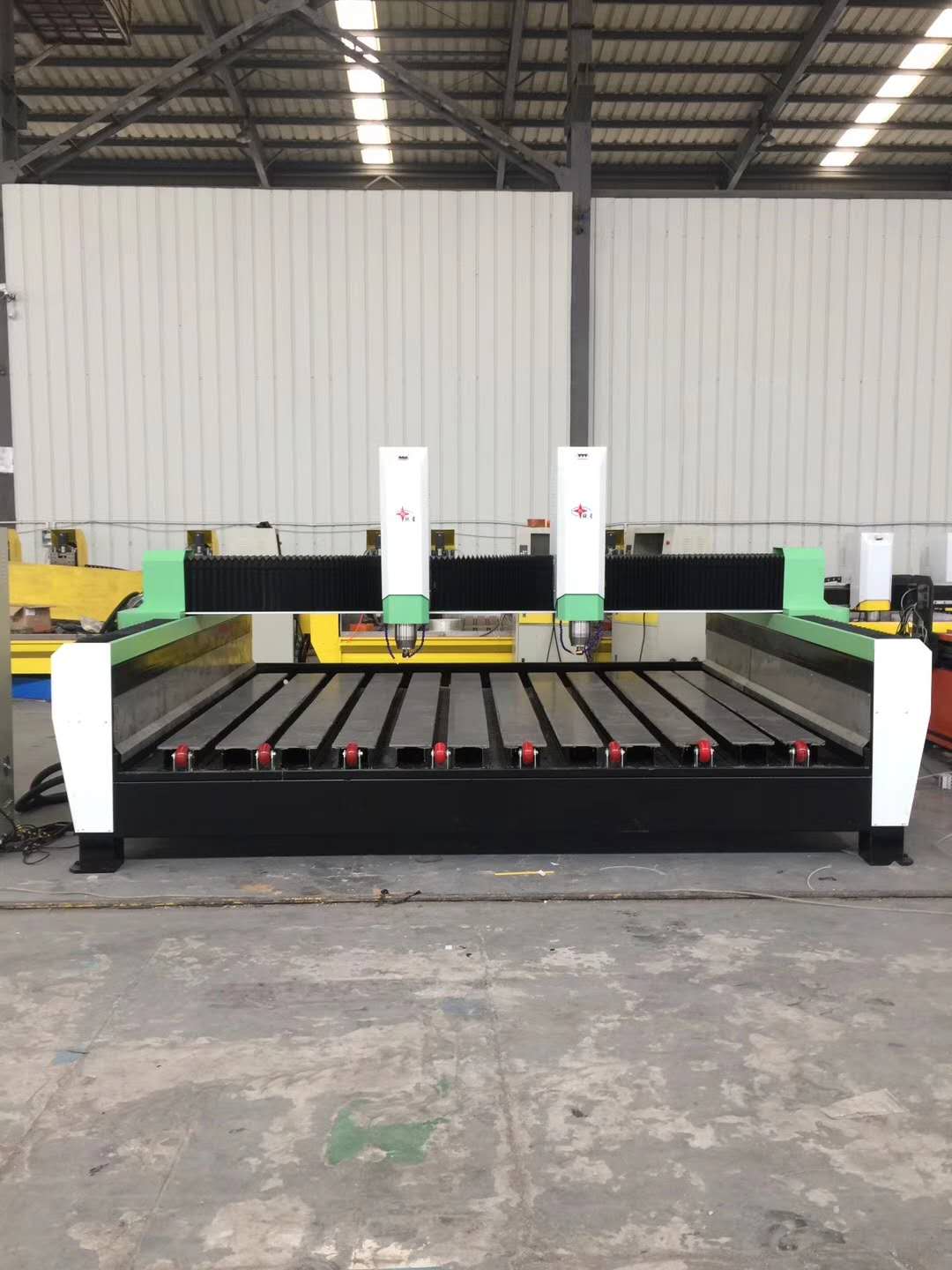 采用工業(yè)級重型床身,剛性強,高速運行床身不抖動,帶蓄水槽